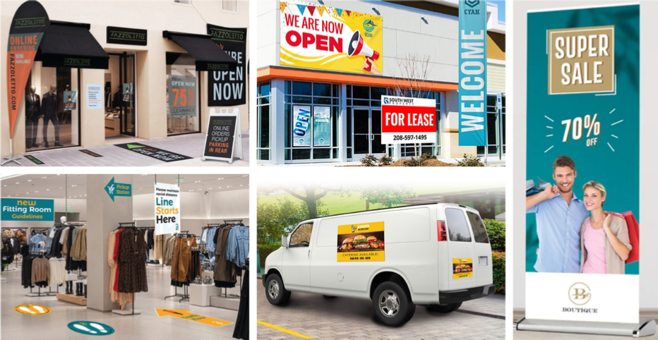 Looking to GO BIG and STAND OUT we are here to help you with our wide selection of LARGE FORMAT PRINTING of Posters, Signs, Yard Signs, Outdoor Banners, Displays, Car Magnets, Table Cloths, Floor Graphics and Flags! Choose from a variety of materials from rigid, fabric, vinyl, or mesh to fit any occasion or need.